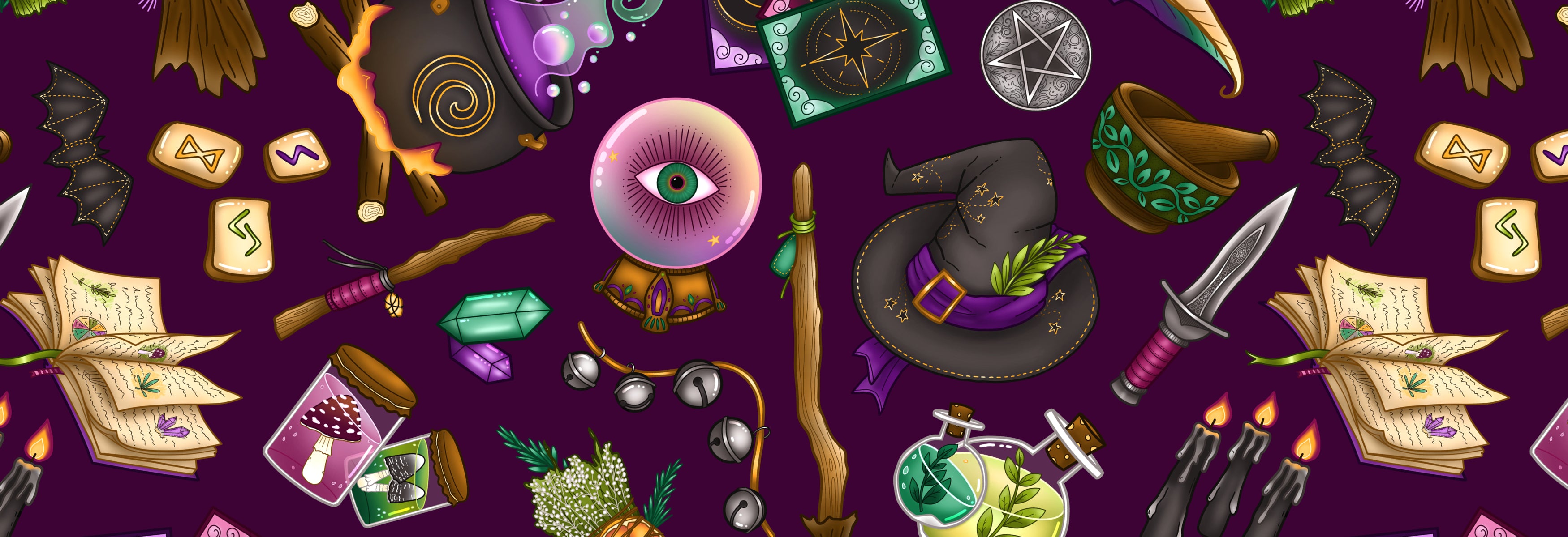 Here is my brand new witchy themed surface design, based off of my discontinued 'Magical Means' pattern. I am busy working on products using this design ready for Spooky Month.
