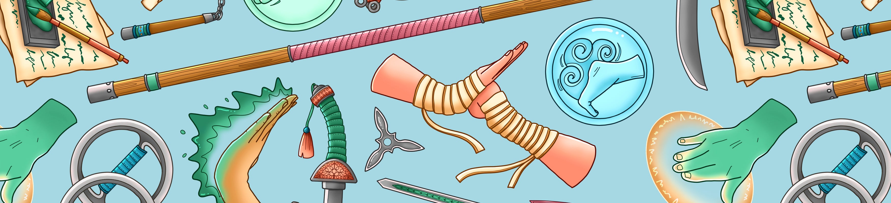 This collection is inspired by monk weapons with a bit of added zen. My Monk collection features items such as kunai, chakram, a quarterstaff, artisan tools, and some symbols for abilities such as hand of healing and flurry of blows.