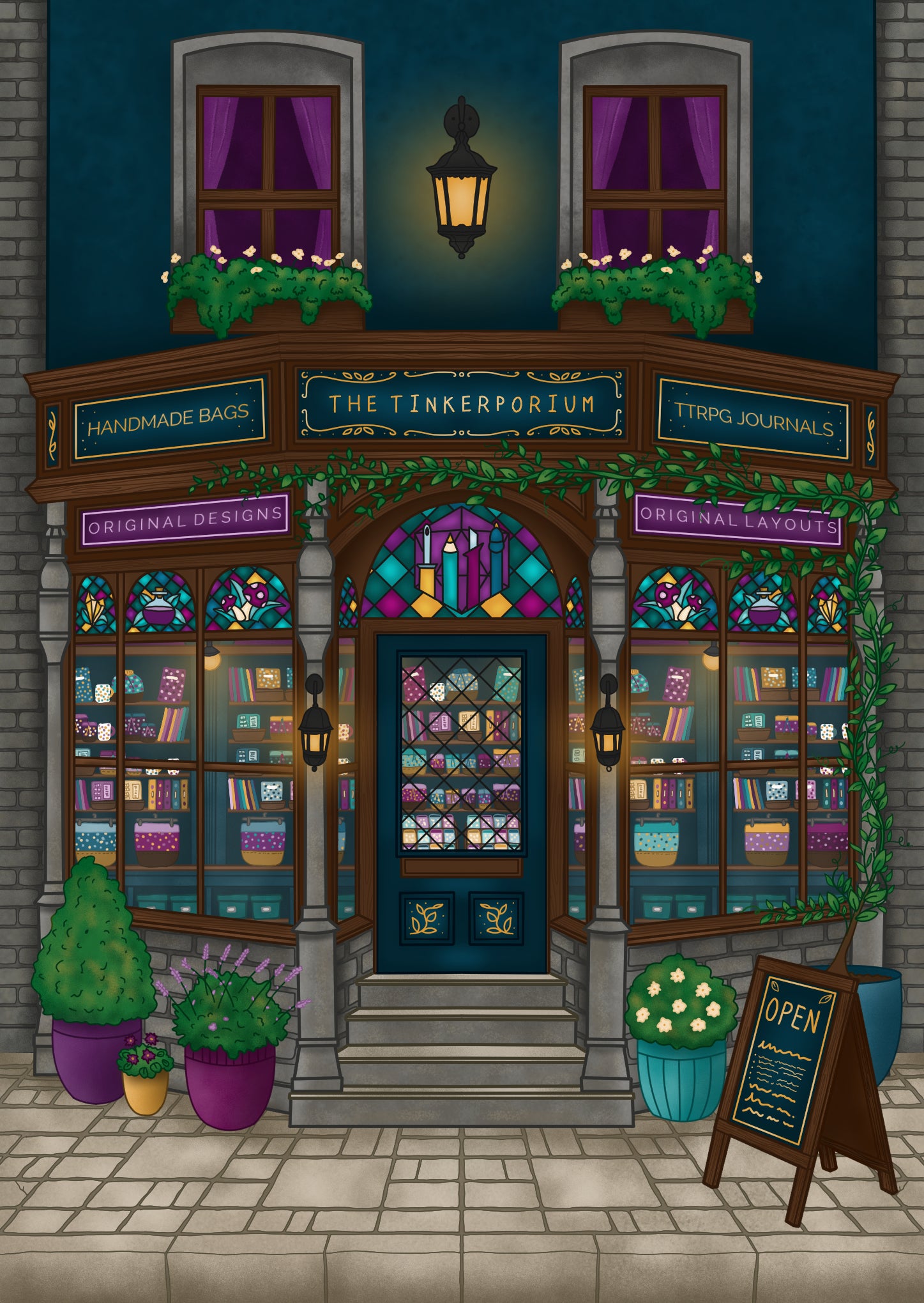 I started The Tinkerporium as a Steampunk accessory shop, back in 2014, but when Covid hit in 2020 I made a few massive changes, I had already been drawing a lot and was working on some surface designs which was one of my dreams, so I just ran with it, designed my first dice bag, then the next and more.