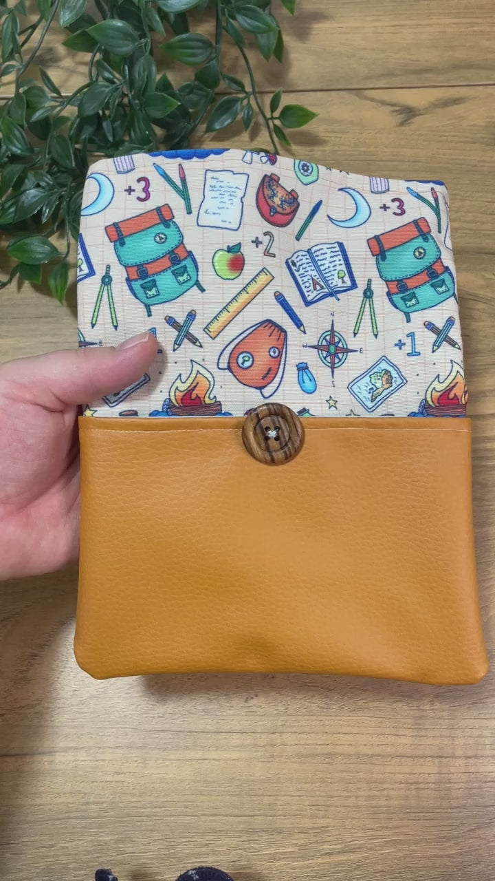 My handmade Mini Adventurer half faux leather book sleeves are made from sturdy materials and fully lined with a wooden button and elastic strap fastening to stop books falling out.